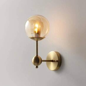 Código do fornecedor: RM005G Marca: Bella Iluminação Potência: 40W Tensão: Bivolt Soquete: E27(bolinha) Material: Metal e vidro Cor: Dourado e champagne Medidas(CxLxA): 12,5 x 24 x 25 cm Atenção, Imagens meramente ilustrativas:
