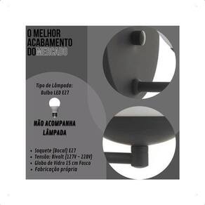 Na om luz, acreditamos que a iluminação adequada pode transformar completamente um ambiente, trazendo Conforto, beleza e funcionalidade. Somos uma empresa especializada na fabricação de acessórios de iluminação, Comprometida em oferecer materiais com qualidade de acabamento excepcional, sempre em conformidade com as Normas de mercado e segurança. ---------------------------------------------------------------------- Arandela moon com globo de vidro 15 cm fosco. não acompanha lâmpada. ---------------------------------------------------------------------- Dados técnicos - tamanho: diâmetro 18cm x altura 17cm - voltagem: bivolt 110/220v - lâmpada: 1 x bulbo led e27 não inclusa
