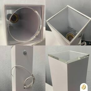 - A Arandela Quadrada Fachos Efeito Parede Muro Externa 2Xe27 possui duas bases E-27, permitindo a utilização de duas lâmpadas.