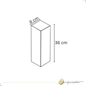 - As dimensões da Arandela Quadrada Fachos Efeito Parede Muro Externa 2Xe27 são 36x5cm.