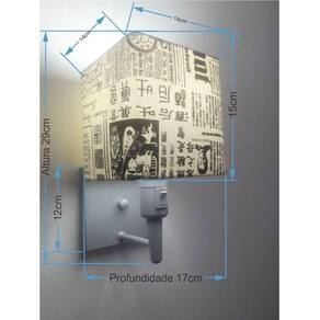 Arandela Quadrada Md-2019 Cinza C/ Inter Liga E Desl Cúpula Em Tecido Ny-jornal - Bivolt Arandela de parede Quadrada Md-2019 Cinza C/ Inter Liga e Desl Cúpula Tecido JornalAs arandelas Lustres Vivare são elementos versáteis e elegantes que podem transformar qualquer ambiente em um espaço cheio de estilo. Seja para adicionar uma iluminação suave, destacar uma parede ou criar um efeito de luz diferenciado.Dimensão:Cúpula em Tecido: 15x14x14cm Arandela de parede Montada: Altura 29cm Largura 14cm Profundidade 17cm Formato: Quadrado Tamanho: Pequeno Especificação:Material: Cúpula em Tecido Estrutura em Alumínio Base Parede: Quadrado 12x12x2cm Resistente: Á Maresia Voltagem: 110V/220V Liga e Desliga: Interruptor no Soquete Tipo de Soquete: E27 Lâmpada Utilizada: Led Bulbo Até 16w ou Fluorescente Espiral Até 25w Cada Capacidade de Lâmpadas: 1 Observação:Acompanha Lâmpada: Não Possui Led Integrado: Não Garantia: 12 Meses Manual de Instalação: Sim Arandela de parede Montada: Sim Controle de Luminosidade: Não Tipo de Embalagem: Caixa Conservação e Manutenção do Produto:A Limpeza deve ser realizada com o produto desligado. Remova o lustre que pode ser lavado com sabão neutro. Nunca utilize produtos químicos e abrasivos Dica:Antes de comprar o seu produto verifique as medidas, o local onde pretende instalar e se necessário o serviço de um profissional qualificado.