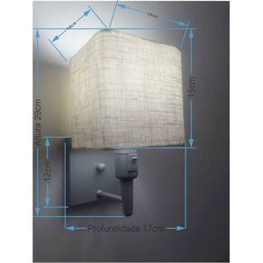 Arandela de parede Quadrada Md-2019 Cinza C/ Inter Liga e Desl Cúpula Tecido Rustico BegeAs arandelas Lustres Vivare são elementos versáteis e elegantes que podem transformar qualquer ambiente em um espaço cheio de estilo. Seja para adicionar uma iluminação suave, destacar uma parede ou criar um efeito de luz diferenciado.Dimensão:Cúpula em Tecido: 15x14x14cm