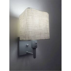 Arandela Quadrada Md-2019 Cinza C/ Inter Liga e Desl Cúpula em Tecido Rustico Bege - Bivolt