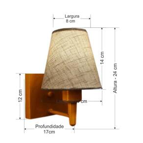 Arandela Quadrada Md-2034 Cobre Cúpula Em Tecido Cone Rustico Bege - Bivolt Arandela de parede Quadrada Md-2034 Cobre Cúpula em Tecido Cone Rustico Bege - BivoltAs arandelas Lustres Vivare são elementos versáteis e elegantes que podem transformar qualquer ambiente em um espaço cheio de estilo. Seja para adicionar uma iluminação suave, destacar uma parede ou criar um efeito de luz diferenciado.Dimensão: Cúpula em Tecido: 14x07x14cm Arandela de parede Montada: Altura 24cm Largura 14cm Profundidade 17cm Formato: Quadrado / Cone Tamanho: Pequeno Especificação: Material: Cúpula em Tecido Estrutura em Alumínio Base Parede: Quadrado 12x12x2cm Resistente: Á Maresia Voltagem: 110V/220V Liga e Desliga: Não Tipo de Soquete: E27 Lâmpada Utilizada: Led Bulbo Até 16w ou Fluorescente Espiral Até 25w cada Capacidade de Lâmpadas: 1 Observação: Acompanha Lâmpada: Não Possui Led Integrado: Não Garantia: 12 Meses Manual de Instalação: Sim Arandela de parede Montada: Sim Controle de Luminosidade: Não Tipo de Embalagem: Caixa Conservação e Manutenção do Produto: A Limpeza deve ser realizada com o produto desligado. Remova o lustre que pode ser lavado com sabão neutro. Nunca utilize produtos químicos e abrasivos Dica: Antes de comprar o seu produto verifique as medidas, o local onde pretende instalar e se necessário o serviço de um profissional qualificado.