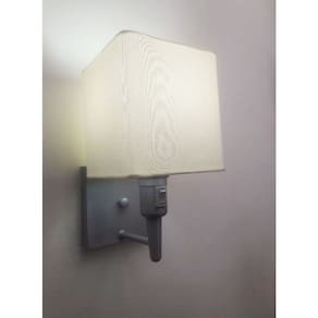 Arandela de parede Quadrada Vivare Md-2019 Base Cinza Com Interruptor e Cúpula em Tecido