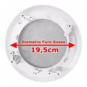 Com um diâmetro aproximado do furo de 19,5cm e do da arandela de 24cm, essa arandela se adapta perfeitamente aos alto falantes de 6 polegadas.