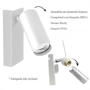 Essa arandela é compatível com lâmpada MR11 e possui soquete Gu10. Além disso, ela é bivolt, o que facilita a sua instalação em qualquer ambiente. Vale lembrar que a lâmpada não está inclusa no produto.