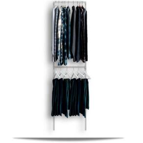 Este modelo é recomendado para montagem de lojas, lavanderias ou residências. O trilho graduado contribui para o fácil deslocamento de altura dos cabideiros ou mesmo a remoção de um deles em caso de vestidos ou casacos longos.