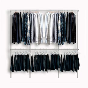 Este modelo é recomendado para montagem de lojas, lavanderias ou residências. O trilho graduado contribui para o fácil deslocamento de altura dos cabideiros ou mesmo a remoção de um deles em caso de vestidos ou casacos longos.