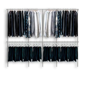 Este modelo é recomendado para montagem de lojas, lavanderias ou residências. O trilho graduado contribui para o fácil deslocamento de altura dos cabideiros ou mesmo a remoção de um deles em caso de vestidos ou casacos longos.