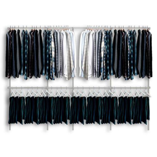 Este modelo é recomendado para montagem de lojas, lavanderias ou residências. O trilho graduado contribui para o fácil deslocamento de altura dos cabideiros ou mesmo a remoção de um deles em caso de vestidos ou casacos longos.