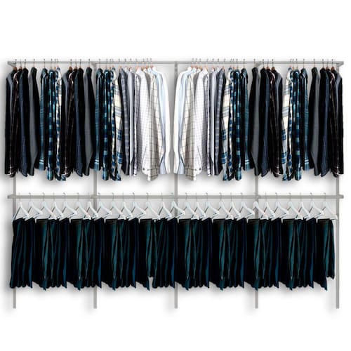 Este modelo é recomendado para montagem de lojas, lavanderias ou residências. O trilho graduado contribui para o fácil deslocamento de altura dos cabideiros ou mesmo a remoção de um deles em caso de vestidos ou casacos longos.