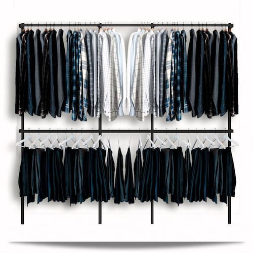 Este modelo é recomendado para montagem de lojas, lavanderias ou residências. O trilho graduado contribui para o fácil deslocamento de altura dos cabideiros ou mesmo a remoção de um deles em caso de vestidos ou casacos longos.