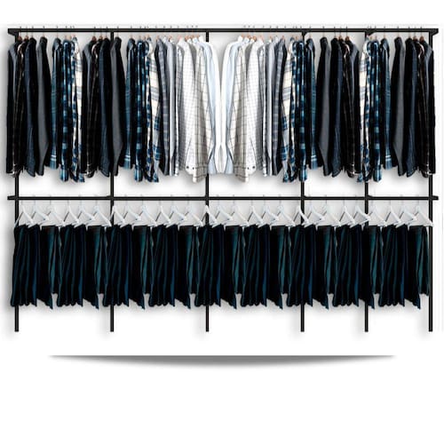 Este modelo é recomendado para montagem de lojas, lavanderias ou residências. O trilho graduado contribui para o fácil deslocamento de altura dos cabideiros ou mesmo a remoção de um deles em caso de vestidos ou casacos longos.