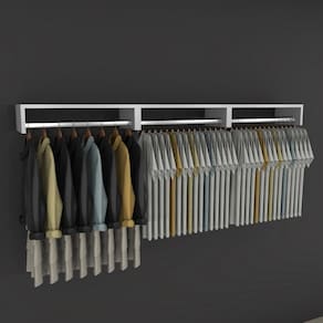Nossa arara cabideiro é feita com MDF de alta qualidade, garantindo durabilidade e resistência ao uso diário. Com um acabamento branco clean e moderno, ela se encaixa facilmente em qualquer ambiente, seja no quarto, closet, loja, boutique ou até mesmo em espaços comerciais. Além de ajudar na organização das roupas, acessórios ou produtos, ela também acrescenta um toque de sofisticação à sua decoração.