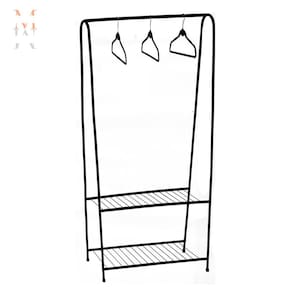 Largura: 40 cm Altura: 173 cm Material: tubo em aço carbono Acabamento: Pintura de alta qualidade eletrostática cor: preto. Tipo da cor: preto fosco Capacidade: comporta peso: 15kg Manutenção: limpar com pano seco.