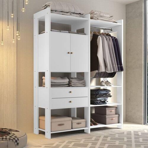Obs: Material - 100% MDF - 2 gavetas com corrediças telescópicas- 2 portas (também pode ser montado sem as portas) - 1 prateleira interna (também pode ser montado sem a prateleira) - 1 cabideiro de metal - Diversas prateleiras com espaço para roupas, sapatos, roupas de cama, malas, e objetos pessoais.