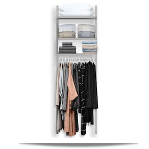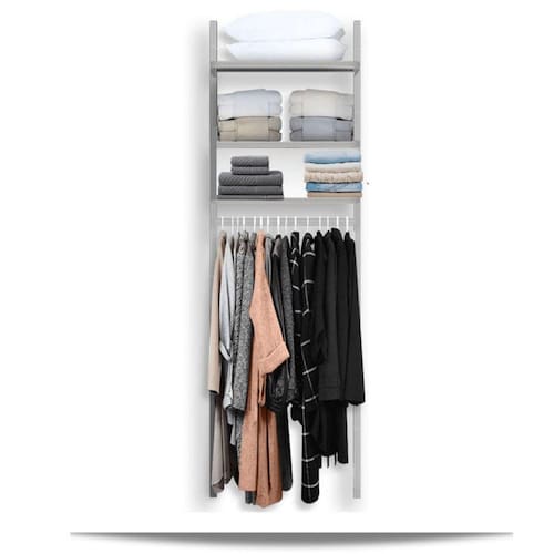 6 *pilhas de roupas dobradas com até 27cm de altura ou em caixa gaveta;