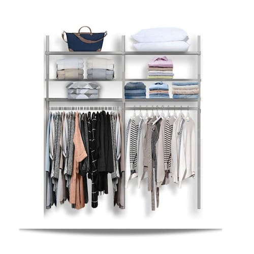 18 *pilhas de roupas dobradas com até 27cm de altura ou em caixa gaveta;