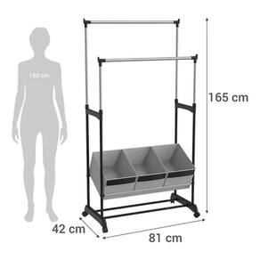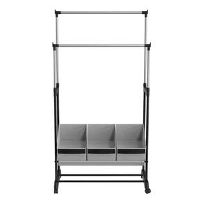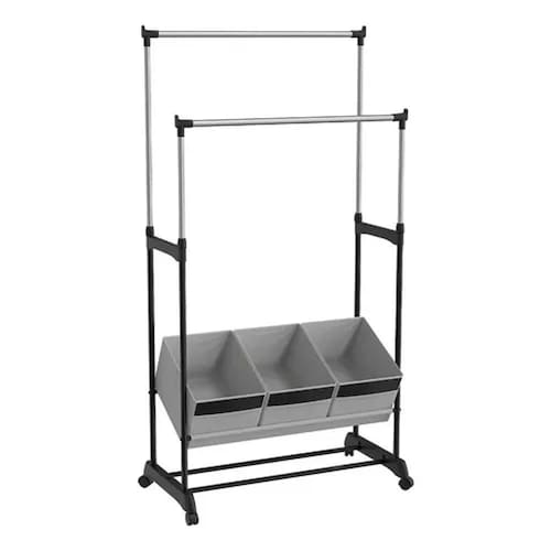 A arara vem equipada com rodas que facilitam a movimentação, tornando-a flexível e prática para diferentes espaços. Além disso, conta com 3 cestos para acomodar itens menores e acessórios, mantendo tudo à mão e bem organizado.