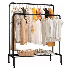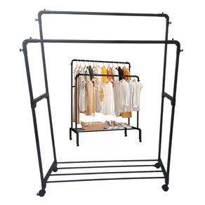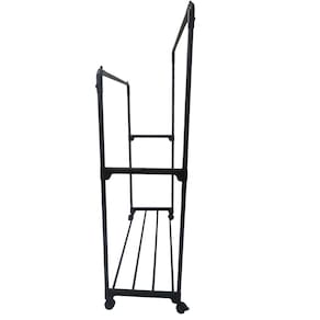 Esta Arara Dupla possui rodinhas, podendo mover para qualquer lugar que desejar. Seu design de barra dupla oferece amplo espaço para pendurar roupas, facilitando a organização.