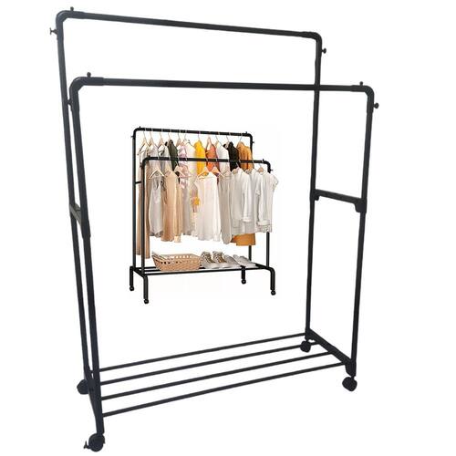 Esta Arara Dupla possui rodinhas, podendo mover para qualquer lugar que desejar. Seu design de barra dupla oferece amplo espaço para pendurar roupas, facilitando a organização.