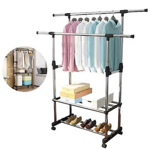 Arara dupla regulável cabideiro sapateira aço inox Nome do produto: arara dupla regulável cabideiro sapateira aço inox Cabideiro de plastico simples para roupas