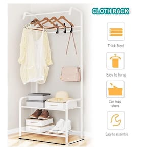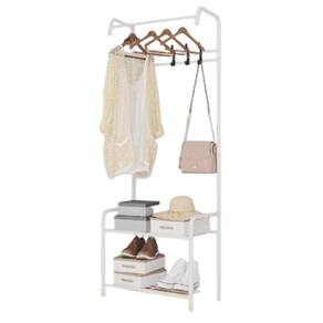 Arara Guarda Roupas Cabideiro Com Prateleira Organizador Roupeiro Sapateira Duplo Multiuso Branco