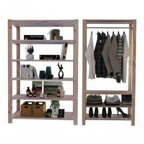 Arara Nova Reforçada E Estante Organizadora Minimalista Conjunto Madeira Natural