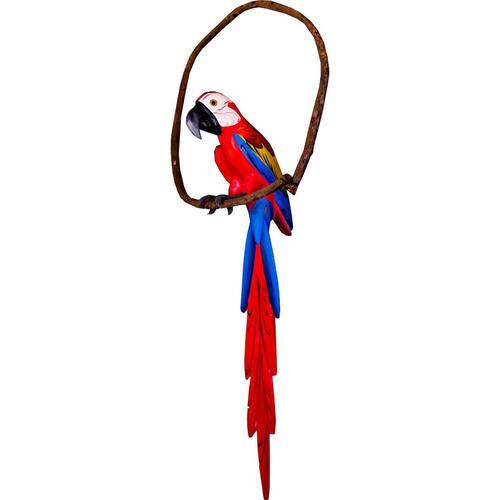 Arara de madeira, para decoração de ambientes como: varandas, jardins e áreas externas. Produto de origem artesanal, esculpido e pintado à mão. Tamanho: 95 x 12 x 12 cm Como montar: encaixe os dois pés no corpo da arara. após esse procedimento, encaixe os pés já fixados, no cipó arco , que contém dois furos para encaixe. Cipó arco de madeira já incluso. Marca: Não Informado