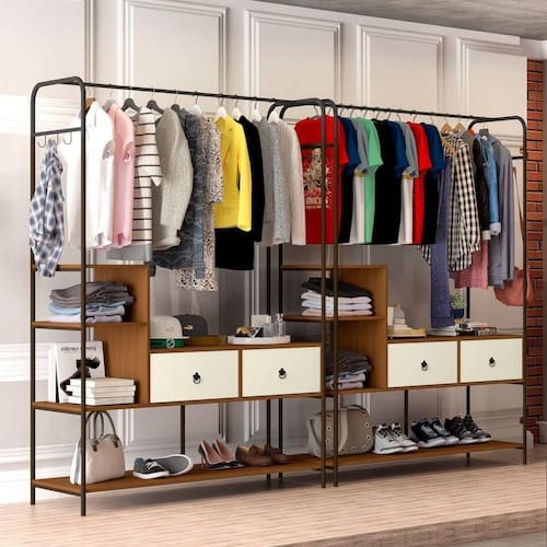 Com design industrial, cada closet possui 3 prateleiras e 2 gavetas, que ajudam a manter as roupas arrumadas.