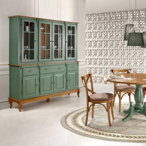 Arca Oratório 4 Portas Madeira, 3 Gavetas E 4 Portas Vidro Hannover - M560806 Cor Laca - Verde Musgo