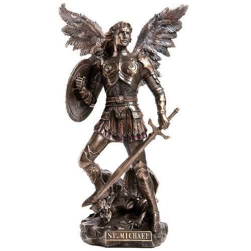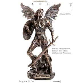 1 estatua arcanjo miguel 32 cm em resina veronese design collection cor bronze