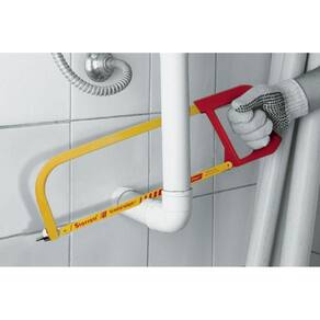 Cabo anatômico, fechado, de plástico resistente assegura comodidade e firmeza no manuseio. Projetado para serras de 300mm, cuja tensão se dá por uma porca borboleta localizada na parte frontal do arco, facilitando o tensionamento da lâmina.