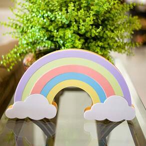 Perguntas frequentes: 1. Qual o tamanho do Arco-Íris Em Madeira Decoryou? O produto possui tamanho de 20 x 36 x 3,2cm.