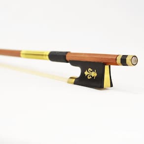 Material: Madeira - Pernambuco Talão: Ébano Crina: Animal Marca: Orquezz Modelo: Semi profissional Serve para: Violino 4/4 Peso aproximado: 63.4g Comprimento: 75.5cm Excelente opção para você que deseja leveza e facilidade, seu visual conta com detalhes cromados no talão e na guarnição, além da pedraria em madre pérola abaixo do talão que o deixa ainda mais elegante. Considerado da linha semi profissional da Orquezz, o arco possui bom equilíbrio e traz suavidade no som. Marca: Orquezz Ean: 7895262319594