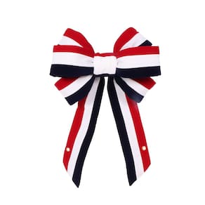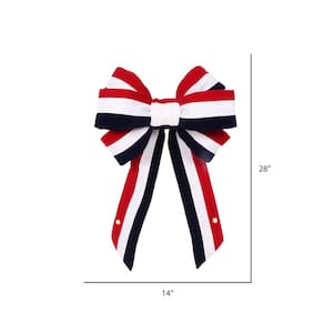 Laço de veludo vermelho-branco-azul Vickerman de 14" x 28", laço patriótico de tamanho 4,5", UV limitado para ambientes internos e externos