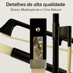 Estrutura em fibra de carbono: mais leve e resistente que a madeira tradicional Design elegante com acabamento em ébano e madrepérola Crina natural branca: melhor aderência ao arco e sonoridade superior Ideal para violinos tamanho 4/4 - músicos adultos, estudantes avançados e profissionais Produto de alta qualidade e durabilidade