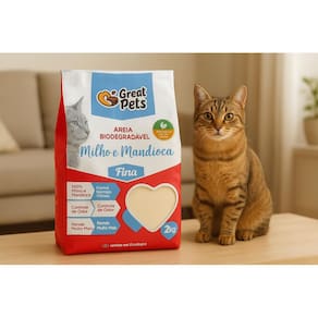 Areia Biodegradável para Gatos Milho e Mandioca 2kg A Areia Biodegradável Great Pets é produzida a partir de milho e mandioca, 100% natural e ecológica, desenvolvida para oferecer higiene, praticidade e bem-estar para o seu gato. Benefícios: