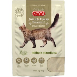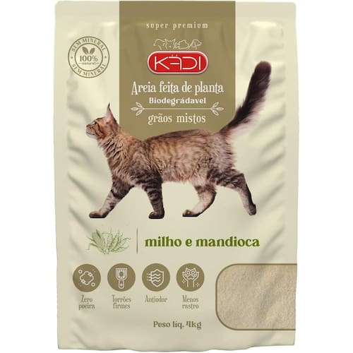 A areia KADI é feita 100% de milho e mandioca e livre de resíduos químicos.
