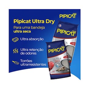 Coloque uma camada de 5cm de altura de Pipicat Ultra Light no recipiente de uso do gato. A urina, em contato com o Pipicat Ultra Dry, concentra-se em uma pequena área, transformando-se em um pequeno torrão. Remova o torrão formado pela urina ou fezes, reaproveitando o restante do produto. Complete a quantidade retirada e troque inteiramente o conteúdo do recipiente a cada 6 semanas. Não descartar no vaso sanitário.