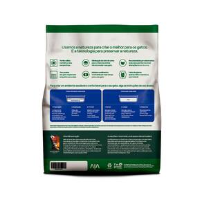 - Super absorvente; - 100% milho e mandioca; - Natural e Biodegradável; - Ideal para múltiplos gatos; - Máxima eliminação de odor; - Forma torrões sólidos instantâneos; - Pode ser descartada no vaso sanitário. - Zero desperdício - Não forma lama - Sem poeira - Grãos pequenos