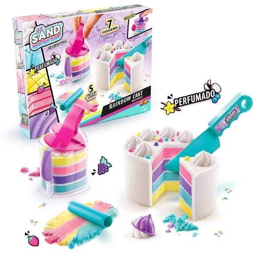 Será que você tem uma confeiteira em casa Com o Kit So Sand Rainbow Cake, a criança estimula a coordenação motora quando esculpe as areias perfumadas e coloridas nos moldes, formando bolos lindos e com cheirinho de frutas O Kit So Sand Rainbow Cake é uma brincadeira gostosa e relaxante Recomendado para crianças acima dos 6 anos de idade.