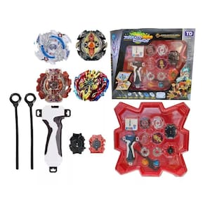 Kit arena beyblade burst metal com partes plástica 02 beyblades 4 beyblade troca 02 lançadores diametro de 5 cm + 01 mega arena 30cm prontos para arena cores não recomendado para crianças menores de 3 anos Marca: Aytoys