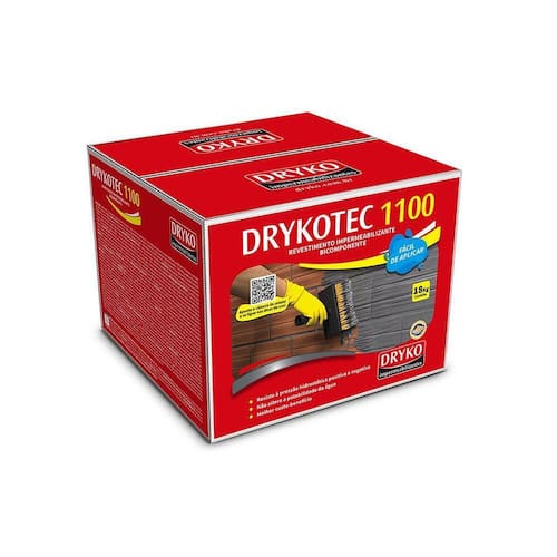Argamassa Drykotec Impermeabilizante Para Obras Reformas 18Kg Drykotec Revestimento Impermeabilizante 1100CO DrykoTec 1100C é uma Argamassa impermeabilizante, com um dos melhores Custo Benefício do Mercado, sendo um produto que ao entrar em contato com a água não altera a sua potabilidade, um produto com extrema facilidade em sua aplicação, atóxico e inodoro, permite assentamento do revestimento cerâmico diretamente sobre o produto.Onde aplicar:- Reservatórios e tanques de água enterrados e apoiados;- Cortinas de subsolo, canaletas e poços de elevador;- Baldrames, sapata corrida, radier, fundações de concreto e rodapés de alvenaria;- Muro de arrimo e paredes em contato com o solo;- Áreas frias como: Cozinhas, banheiros, copas, área de serviço, lavabos e áreas sujeitas à -umidade constante;- Base para o sistema impermeabilizante com DRYKOTEC 5500 e DRYKOTEC 7700 em piscinas enterradas e reservatórios;Para quem é indicado:Para qualquer construção que tenha qualquer tipo de contato com umidade constante, sendo esta uma construção de pequeno ou grande porte. O DrykoTec 1100C é para quem quer ter a certeza de uma impermeabilização segura e sem dores de cabeça, contando com uma impecável aderência e segurança.Preparo do produto: Adicionar todo o componente B líquido em um recipiente limpo e com auxílio de um misturador com hélice iniciar a mistura adicionando aos poucos o componente A pó - cimento especial . Misturar mecanicamente por 5 minutos os componentes A e B ou por 10 minutos manualmente com haste limpa até formar uma pasta homogênea sem grumos.