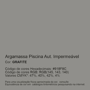 Argamassa Piscina Autofugante Impermeável é fornecida na cor Grafite.