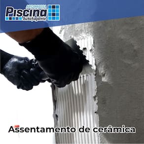 Características Argamassa Piscina Autofugante foi desenvolvida com a finalidade de assentamento e rejuntamento simultâneo de pastilhas, revestimentos cerâmicos, porcelanatos de médios e grandes formatos, e pedras naturais. Possui alta aderência e resistência, produto inodoro e não tóxico. Pode ser aplicada em ambientes internos e externos. Atende aos requisitos das normas ABNT NBR14992 e NBR 14081.
