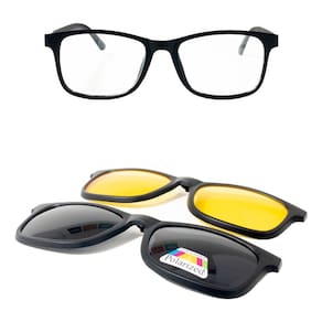 Conjunto De Clip On 3 Em 1 - Armação + Lente De Sol Preto Polarizado + Lente Amarela Visão Noturna