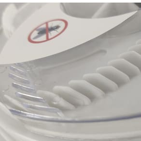 Com esta armadilha de moscas voce precisa apenas colocar uma isca para atrair os insetor, como mel, alguma pequena sobra de comida que caiba na armadilha.