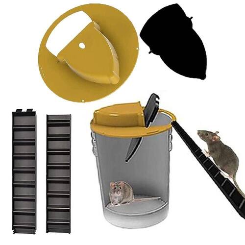 Armadilha para captura de ratos higienica, fácil de montar, não há necessidade de usar cola. Feita para capturar, mas pode também encher o balde com água para que a armadilha seja letal. E você pode usa-lá sempre, pois é reutilizavel.